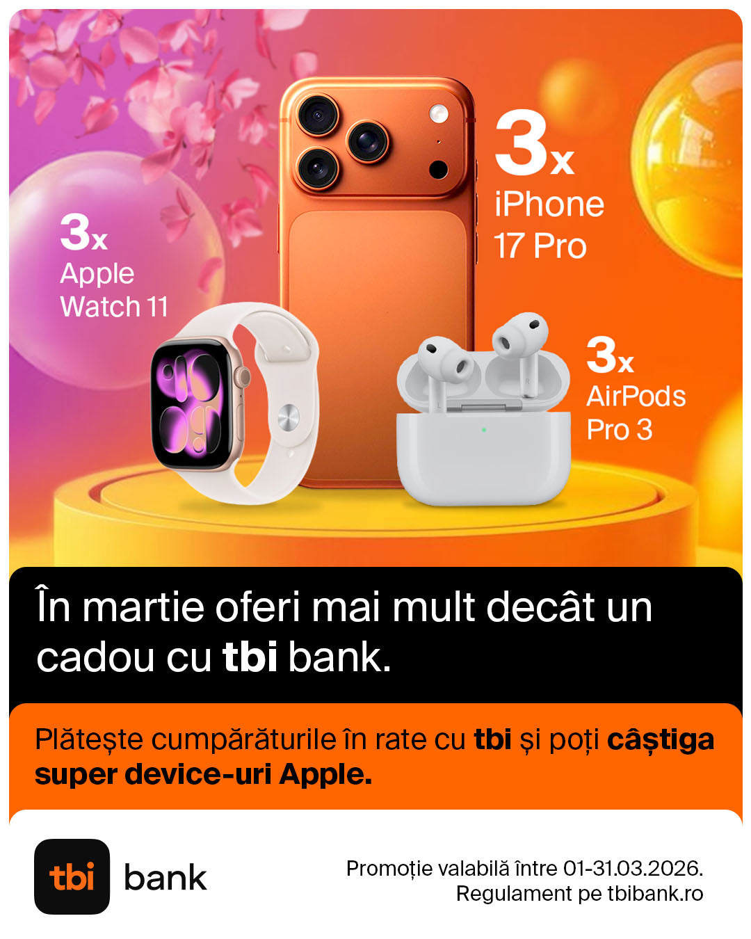 Plasezi o comandă de minimum 500 lei, alegi plata în rate prin tbi bank și intri automat în tragerea la sorți pentru premii premium.