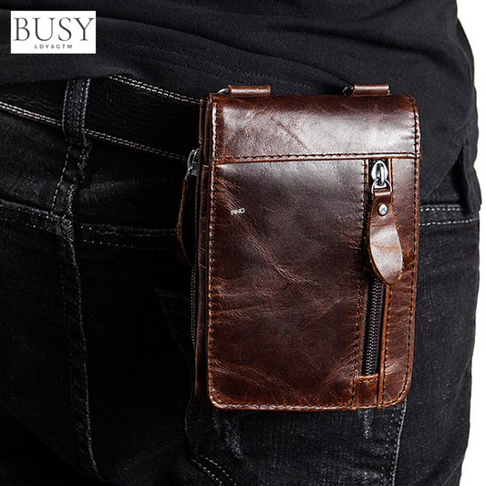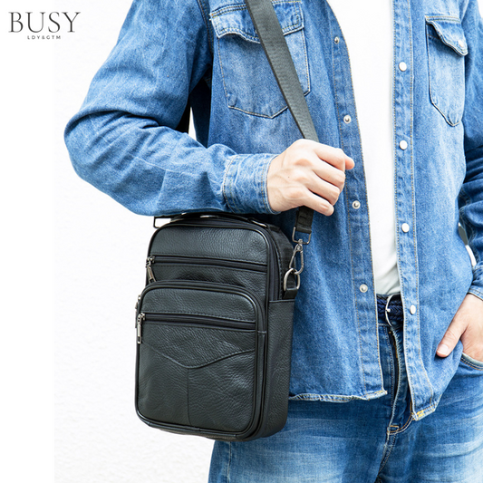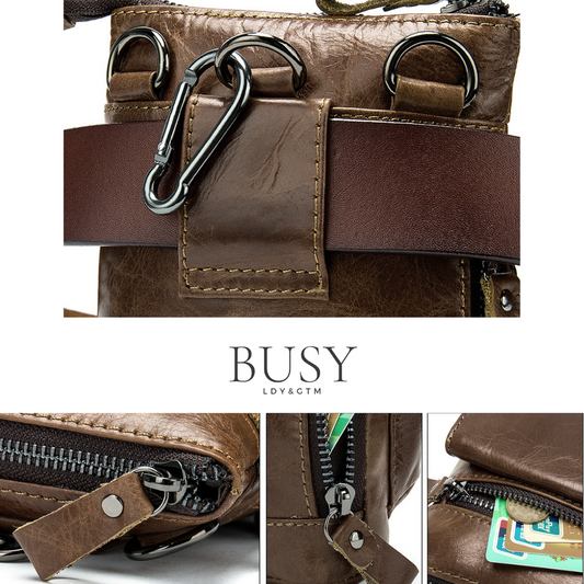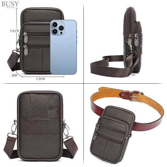 Geanta barbati Swift, piele naturala, de umar si atasabila la curea, maro inchis