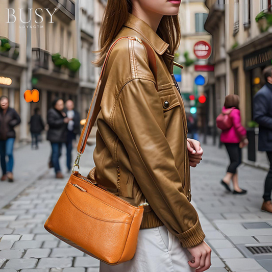 Geanta dama Bella, piele naturala, buzunar rapid exterior si antifurt interior, neagra