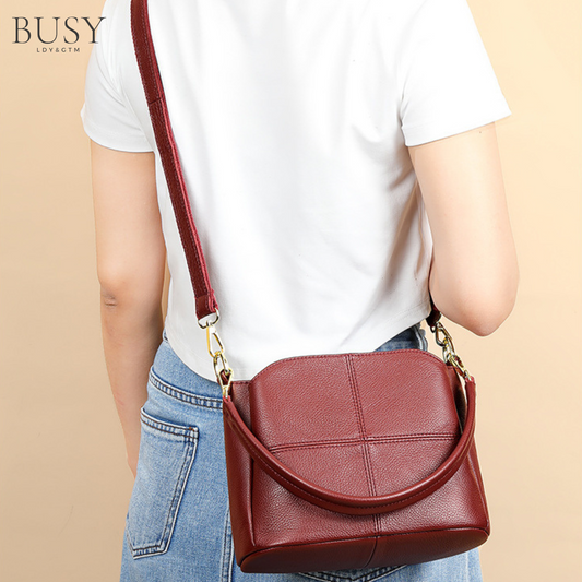 Geanta dama Caprice, piele naturala, de umar si de mana, compartimente multiple, RedWine