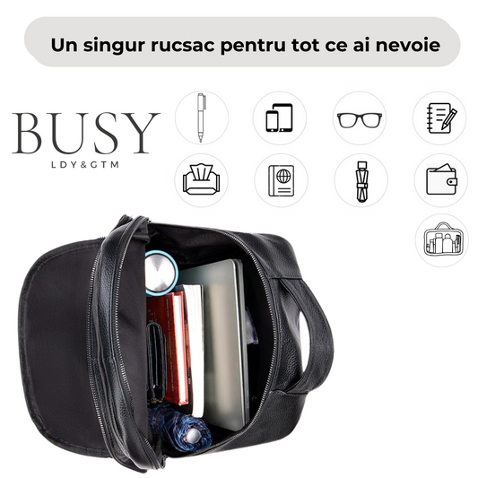Rucsac din piele naturala, Zenith, barbati, capacitate mare, spatiu laptop, negru