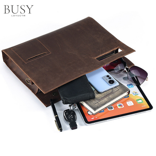 Geanta unisex Pixel, piele naturala, slim, minimalista, maro