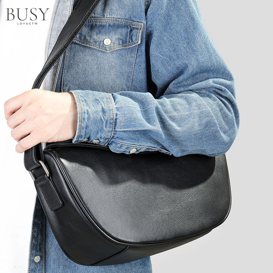 Geanta dama Muse, piele naturala, compacta si minimalista, de umar si de mana, neagra