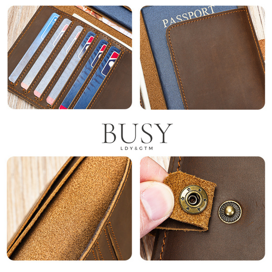 Portofel pașaport piele naturala Crazy Horse, Clas ID, stil retro, maro