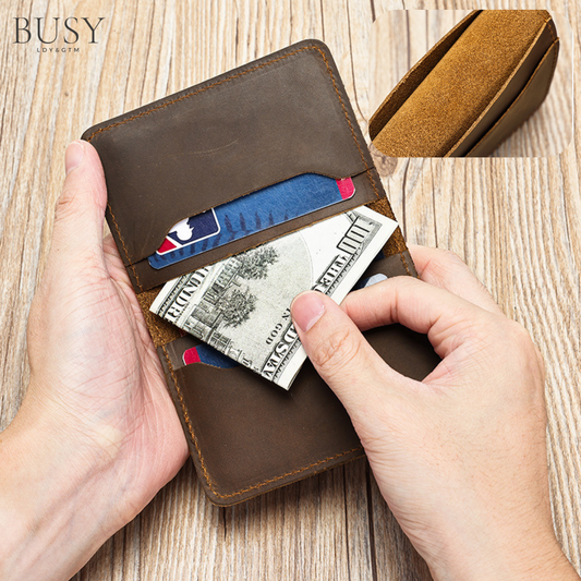 Portofel compact piele naturala Crazy Horse ,BUSY LDY & GTM® Clas, stil retro, maro