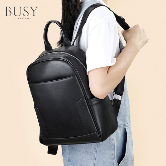Rucsac piele Spark, piele naturala premium, unisex, compartiment tableta si laptop, negru