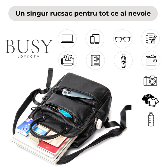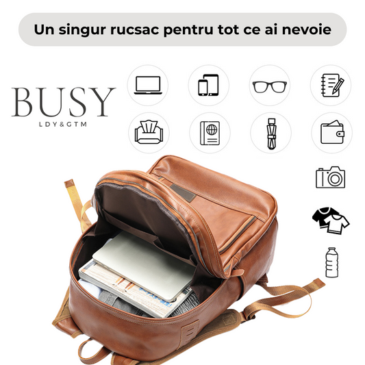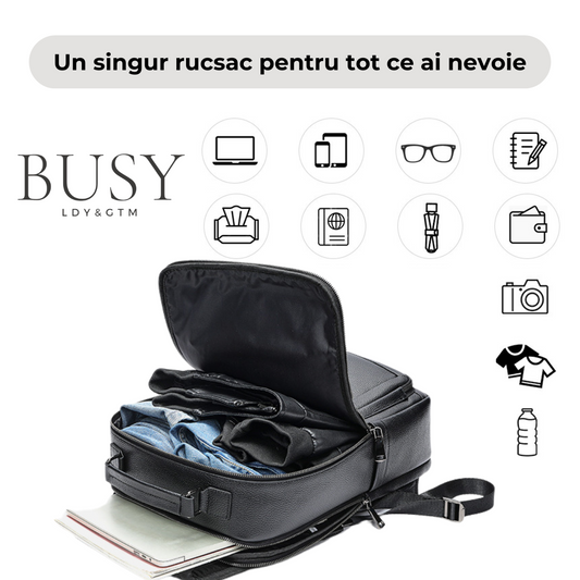 Rucsac laptop 15,6 Urban, barbati, piele naturala, multifunctional, suport troler, spate respirabil, negru