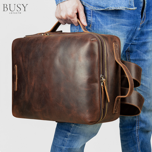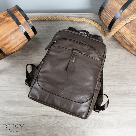 Rucsac Laptop 16' Piele Naturală, Noble, Design Retro Business, spate respirabil / ventilat, Ataşabil Troler, Maro/Cafea