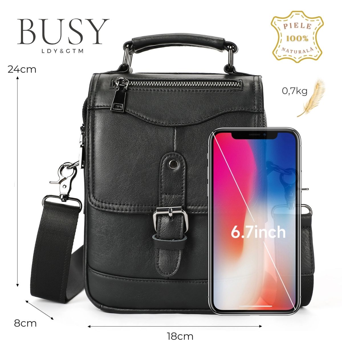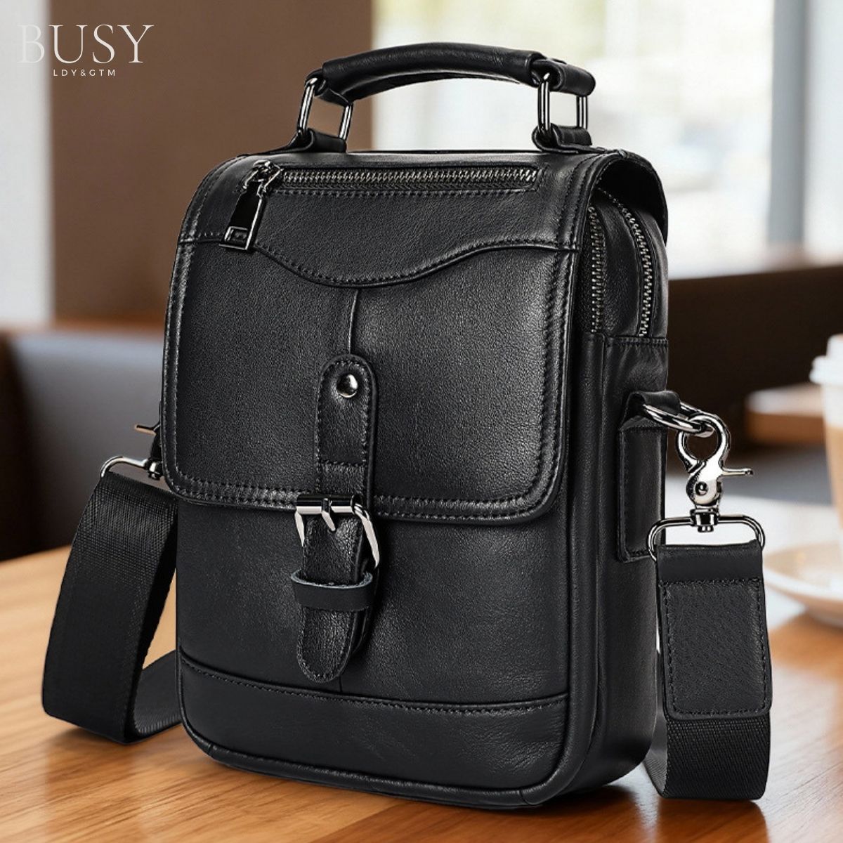 Geantă bărbați Tore din piele naturală neagră – eleganță clasică, organizare completă | BUSY LDY & GTM®5 în stoc