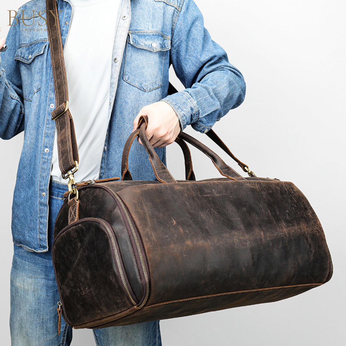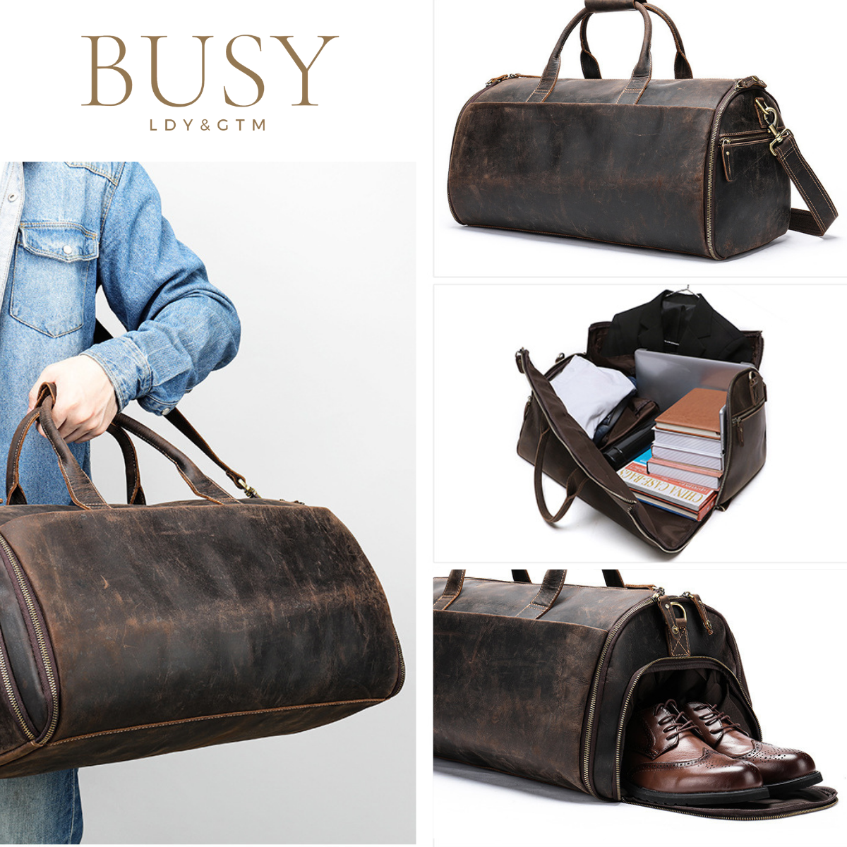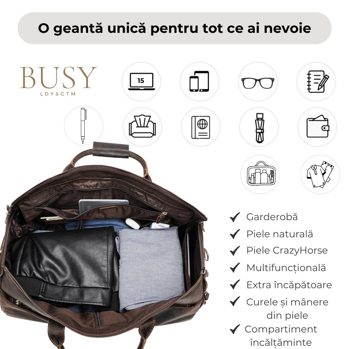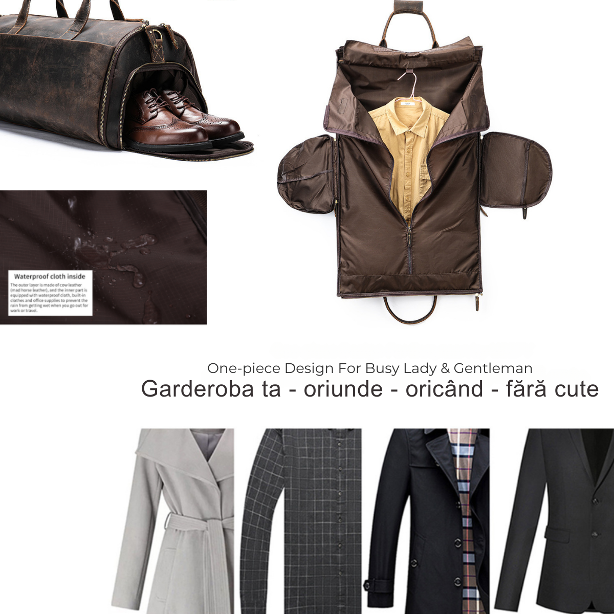 - Eleganta si Durabilitate de Exceptie: Confectionata din piele naturala de cea mai buna calitate, aceasta geanta din piele straluceste prin aspectul sau sofisticat si rezistenta sa in timp. Cu aceasta geanta voiaj, vei aduce cu tine un strop de lux in fiecare calatorie.