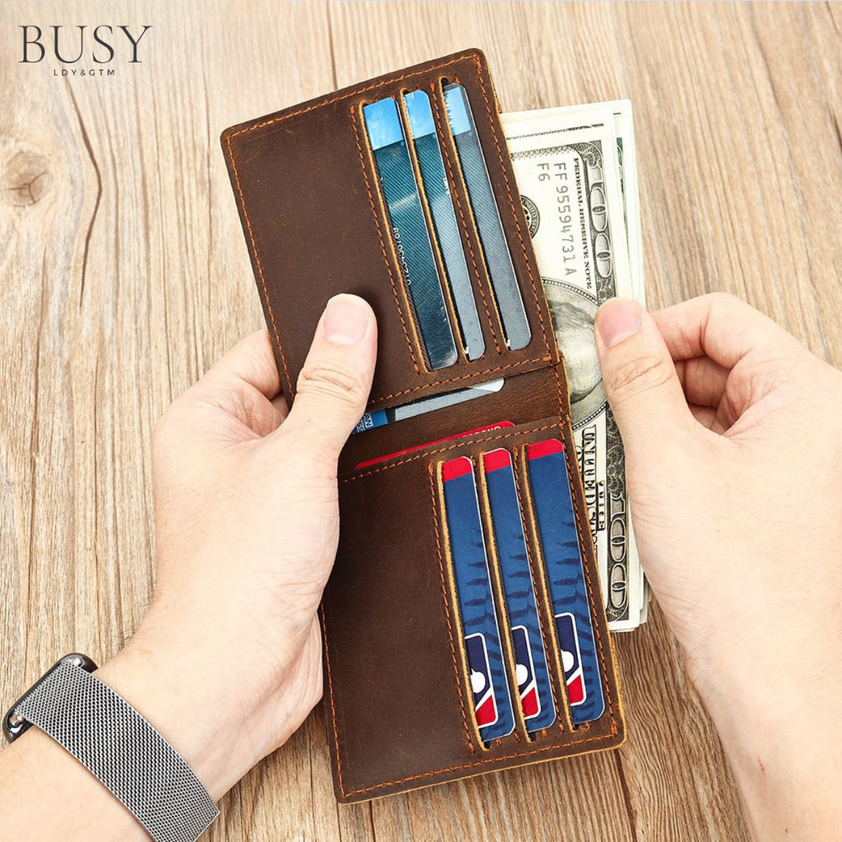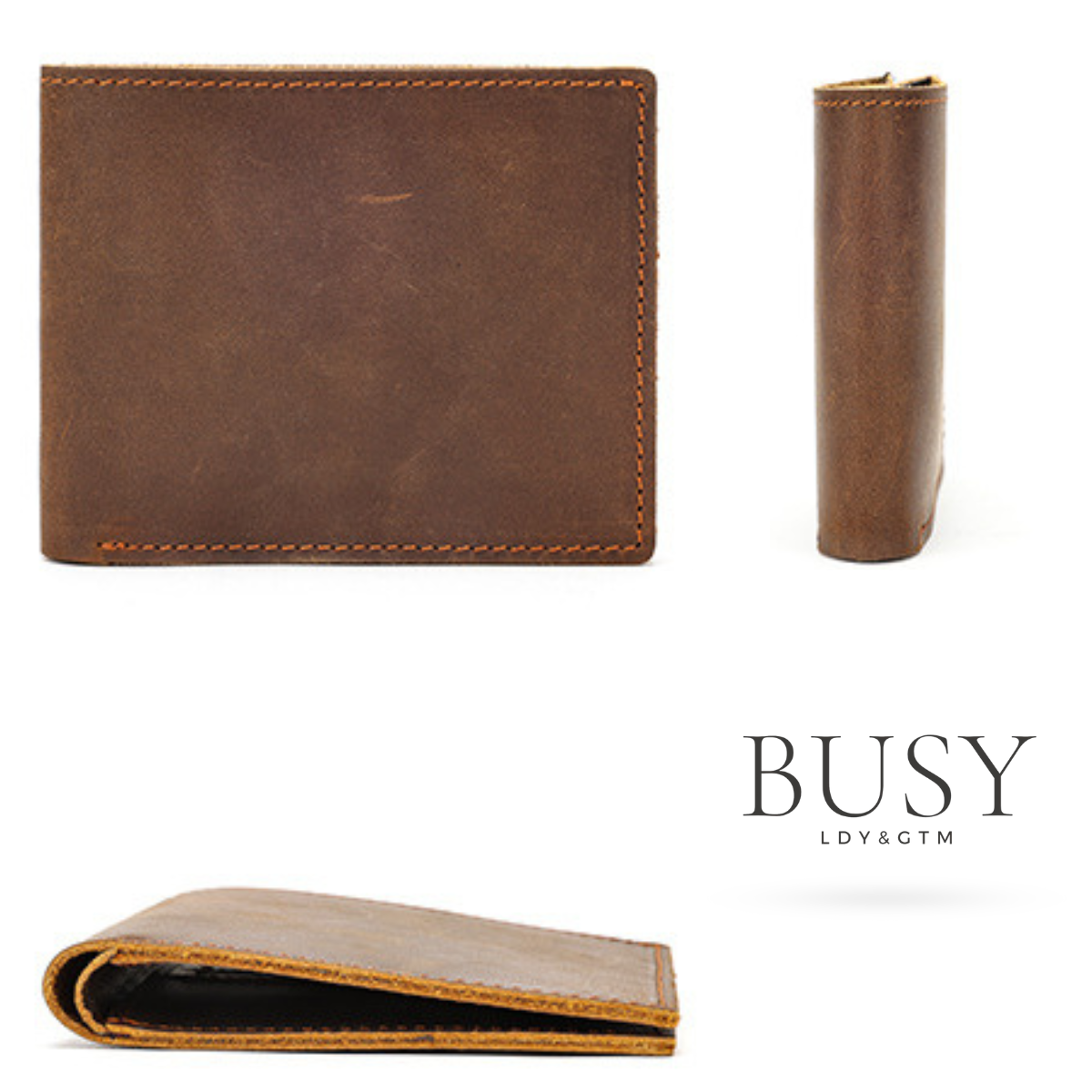 Portofel compact piele naturala Crazy Horse, BUSY LDY & GTM® Clas B, Coffee