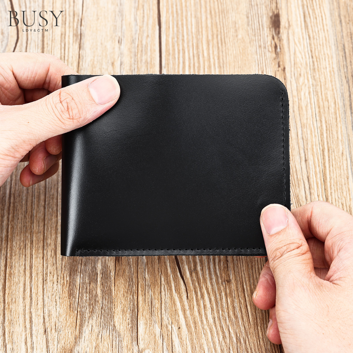 Portofel minimalist piele naturala, BUSY LDY & GTM® Clas A, stil retro, negru