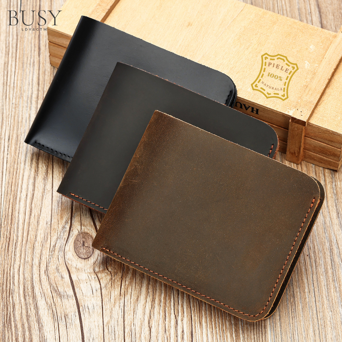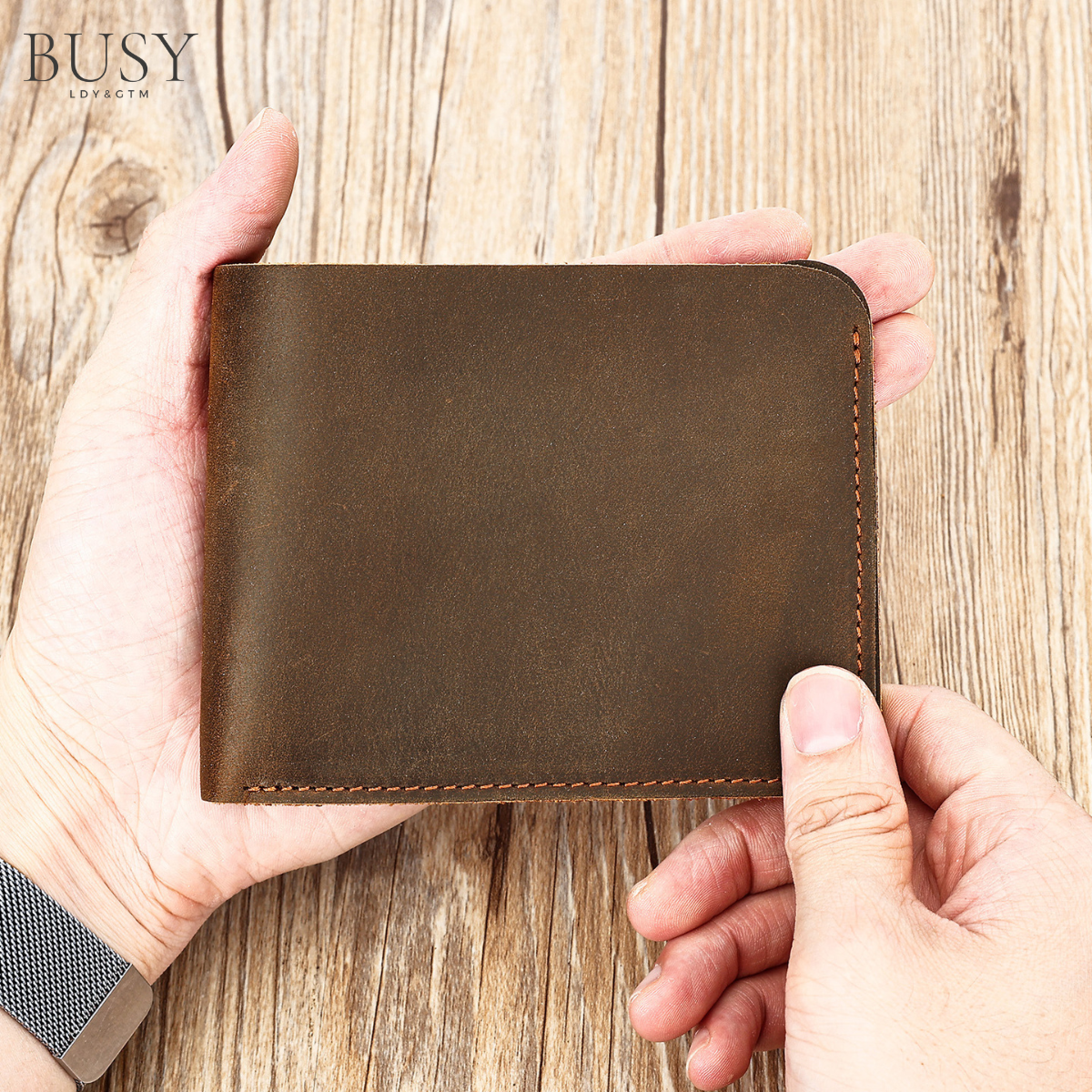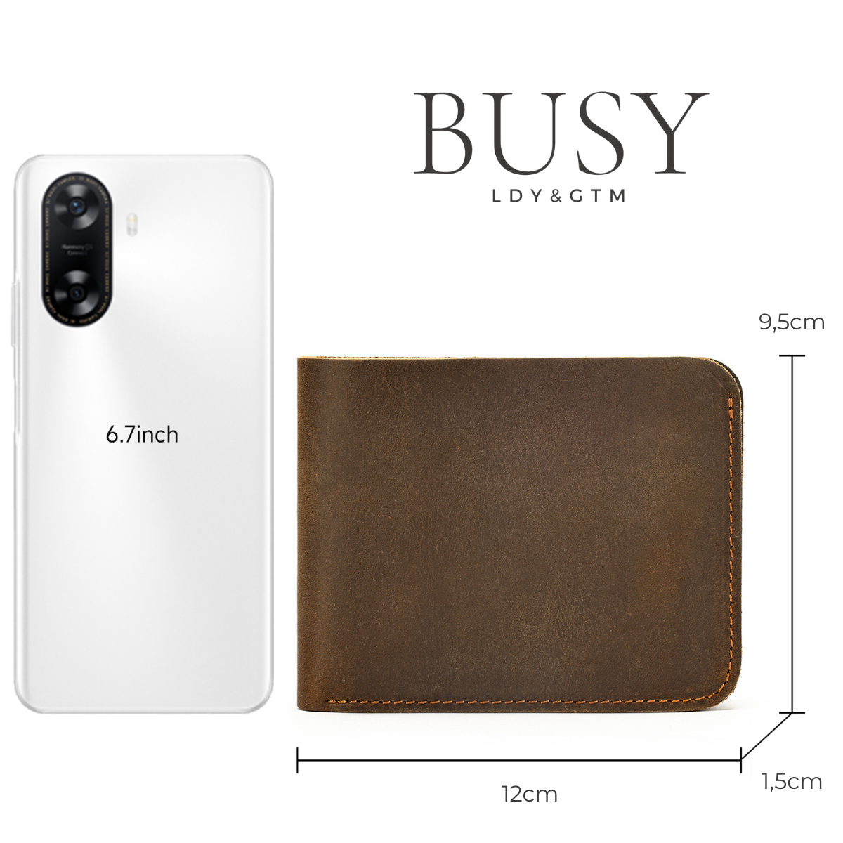 Portofel minimalist piele naturala Crazy Horse, BUSY LDY & GTM® Clas A, stil retro, coffee