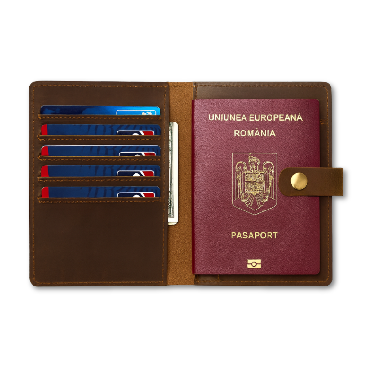 Portofel pașaport piele naturala Crazy Horse, Clas ID, stil retro, maro