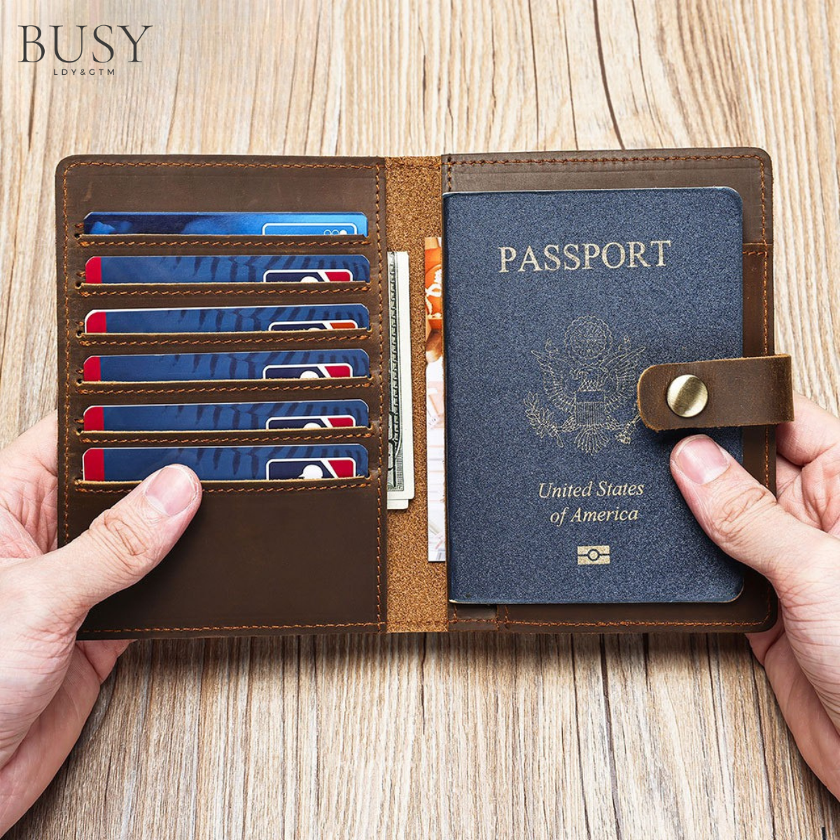 Portofel pașaport piele naturala Crazy Horse ,BUSY LDY & GTM® Clas ID, stil retro, maro