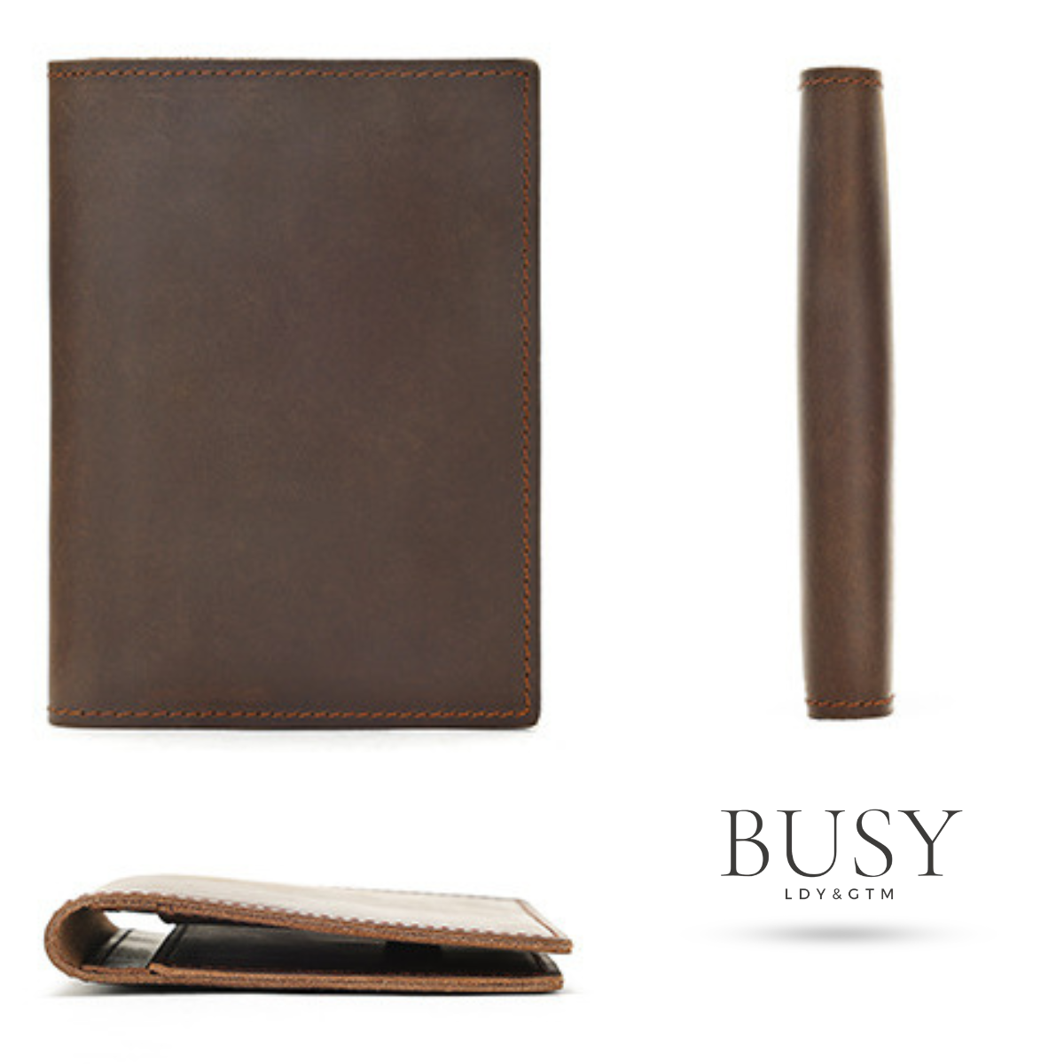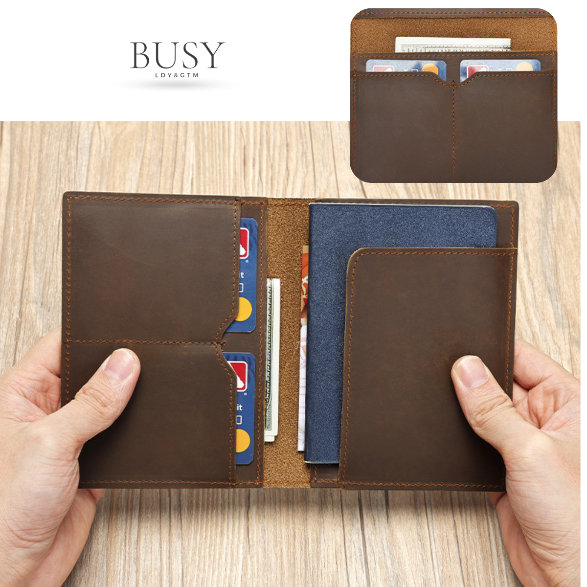Portofel pasaport piele naturala Crazy Horse ,BUSY LDY & GTM® Clas ID2, stil retro, maro