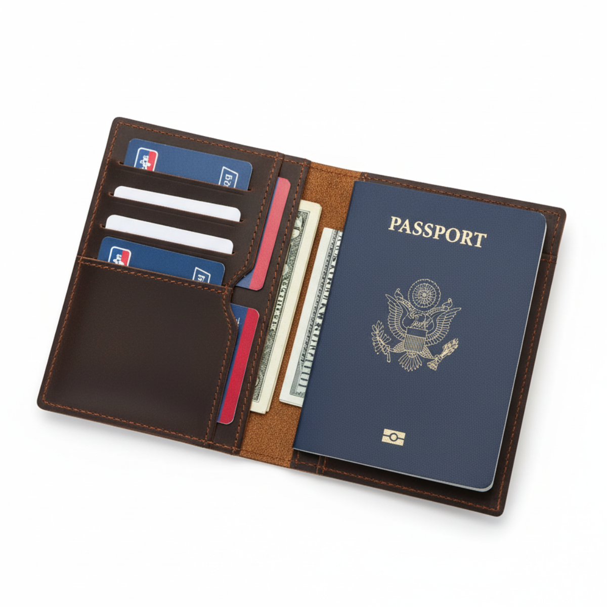 Portofel pasaport piele naturala Crazy Horse, Clas ID2, stil retro, maro