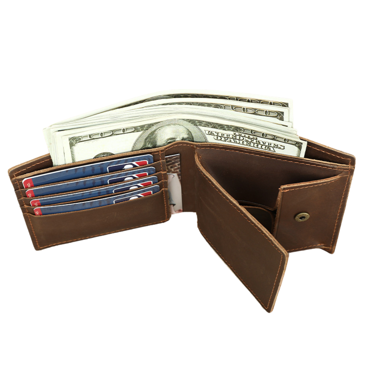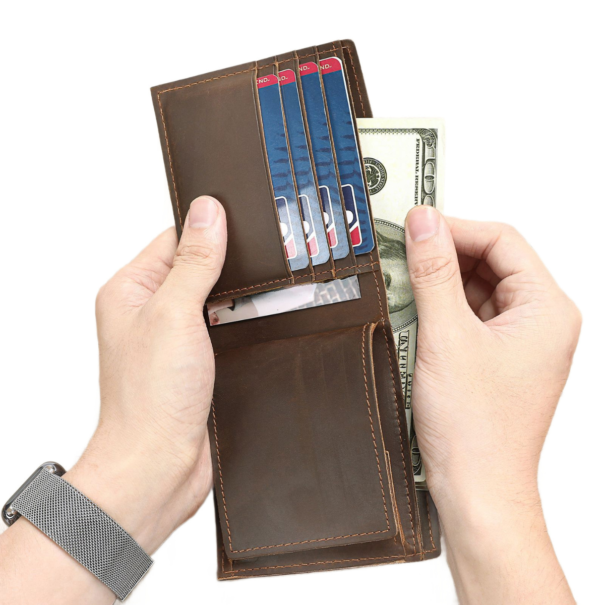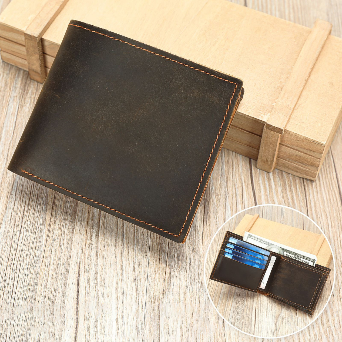 Realizat din piele naturală Crazy Horse, acest portofel aduce eleganța designului retro într-un accesoriu practic și durabil. Cu sloturi pentru carduri și un spațiu dedicat pentru monede și bancnote, completează perfect viața urbană, oferind stil și funcționalitate în același timp.